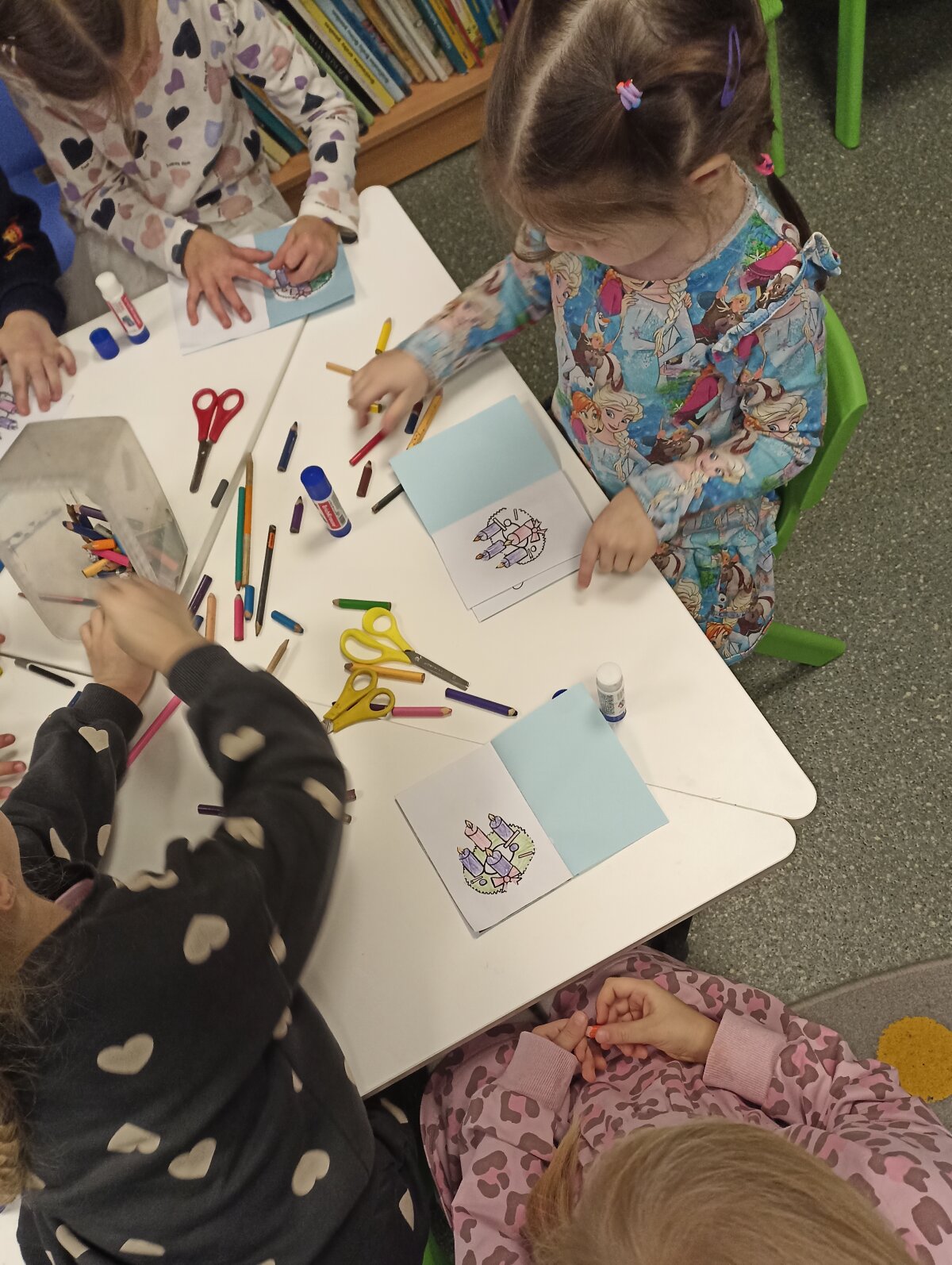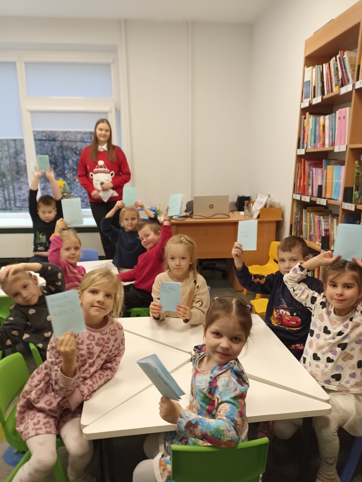 Gruodžio 12 d. „Giliukų“ grupės vaikai apsilankė bibliotekoje, kur ne tik susipažino su bibliotekos veikla, bet ir dalyvavo edukacijoje „Švenčių laukimas ir kalėdiniai simboliai“. Bibliotekininkės Austėjos vestos pamokėlės metu vaikai turėjo galimybę pasidalinti kuo jiems svarbios gruodžio mėnesio šventės ir sužinoti daugiau apie Kalėdų tradicijas ir simboliką. Pamokėlės pabaigoje vaikai pasigamino savo Kalėdų knygeles.