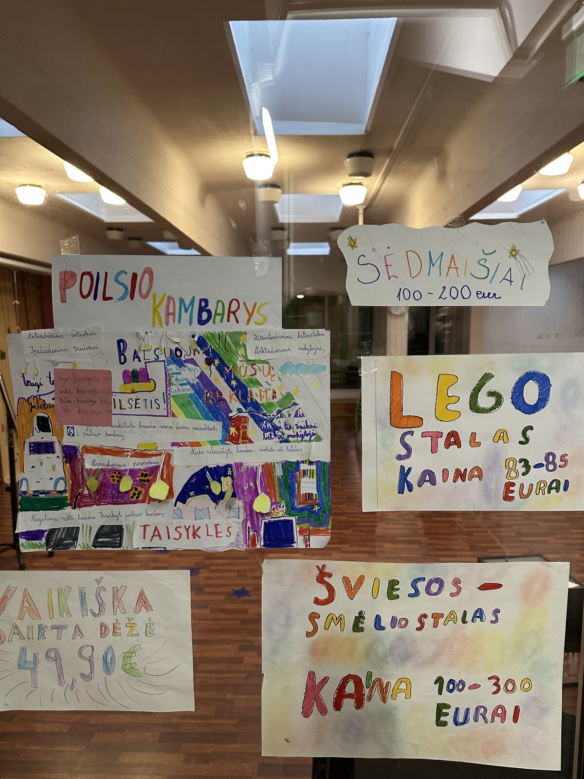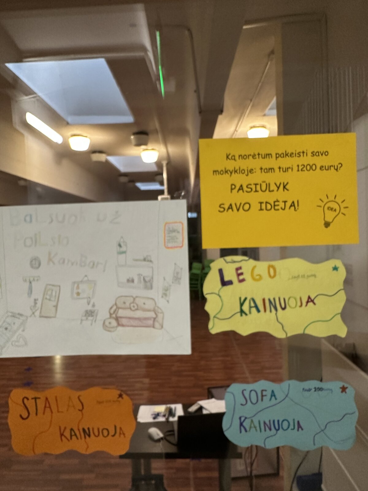 3–4 klasių mokiniai sujungė jėgas ir pateikė bendrą idėją – minkštus baldus poilsio ir žaidimų kambariui bei lavinamuosius žaidimus. Pasak jų, tokia erdvė būtų puiki vieta atsipūsti, pasimėgauti ramiu laiku, lavinti kūrybiškumą ir skatinti tarpusavio bendravimą.