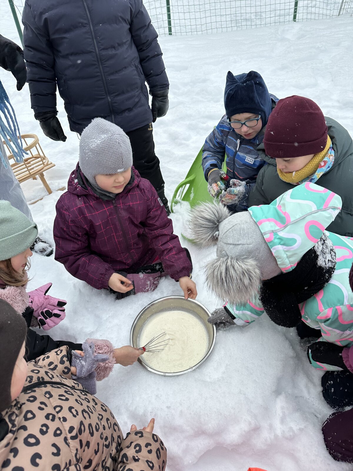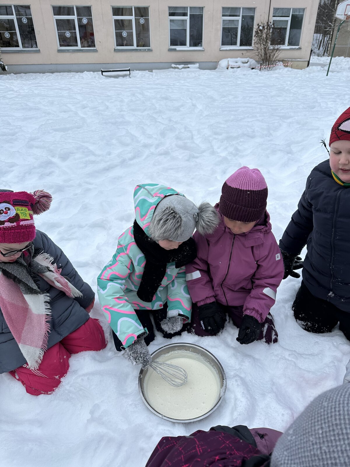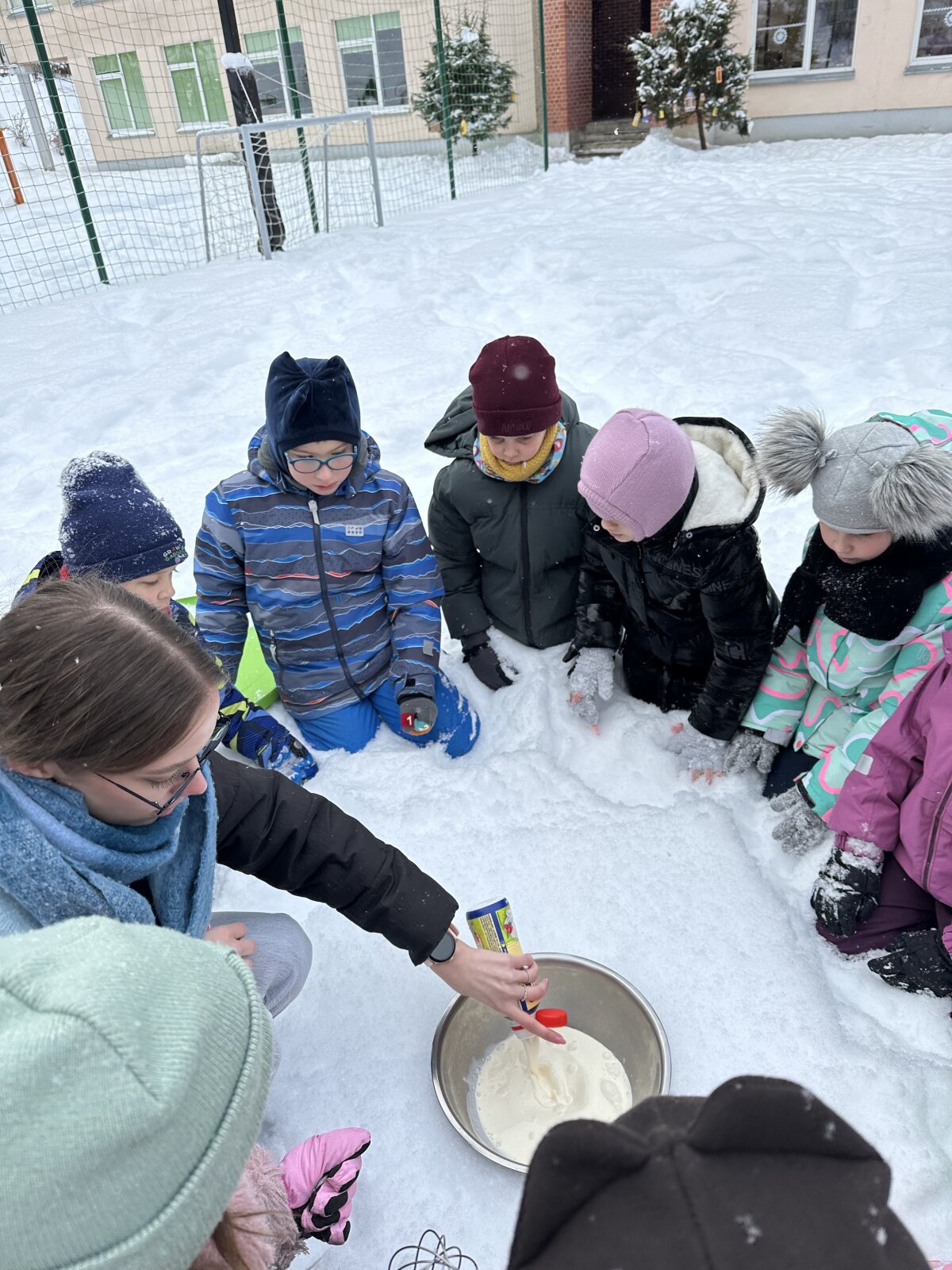 Sausio 23 dieną, net ir spaudžiant 10 laipsnių šaltukui, antrokams mokytis buvo labai smagu! Kartu su mokytojomis Asta ir Kotryna mokiniai išėjo į lauką ir ant sniego ėmėsi neįprastos, bet labai smagios veiklos – gamino ledus iš grietinėlės. Nors šaltukas kandžiojo nosis, entuziazmo netrūko. Grietinėlę plakėme visą pamoką, pasikeisdami, kantriai laukdami rezultato ir stebėdami, kaip žiema padeda kurti skanėstą