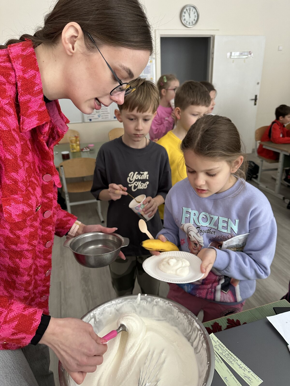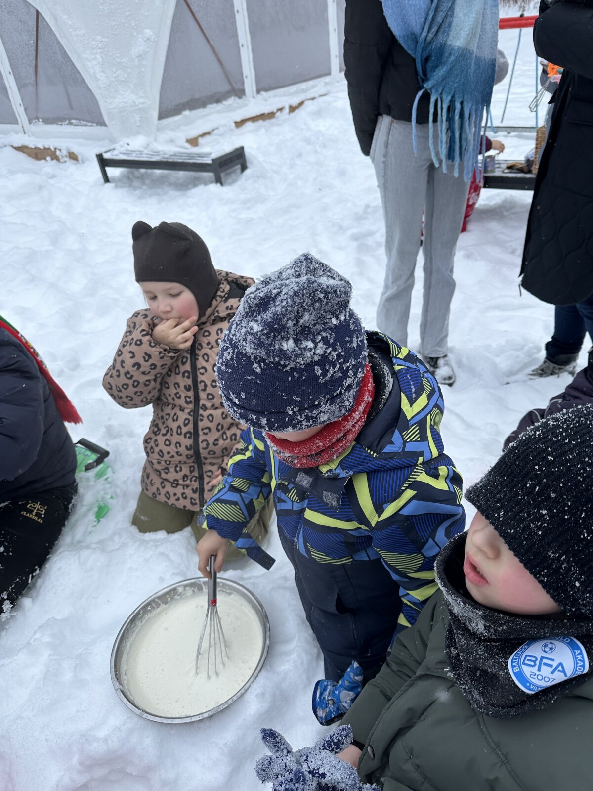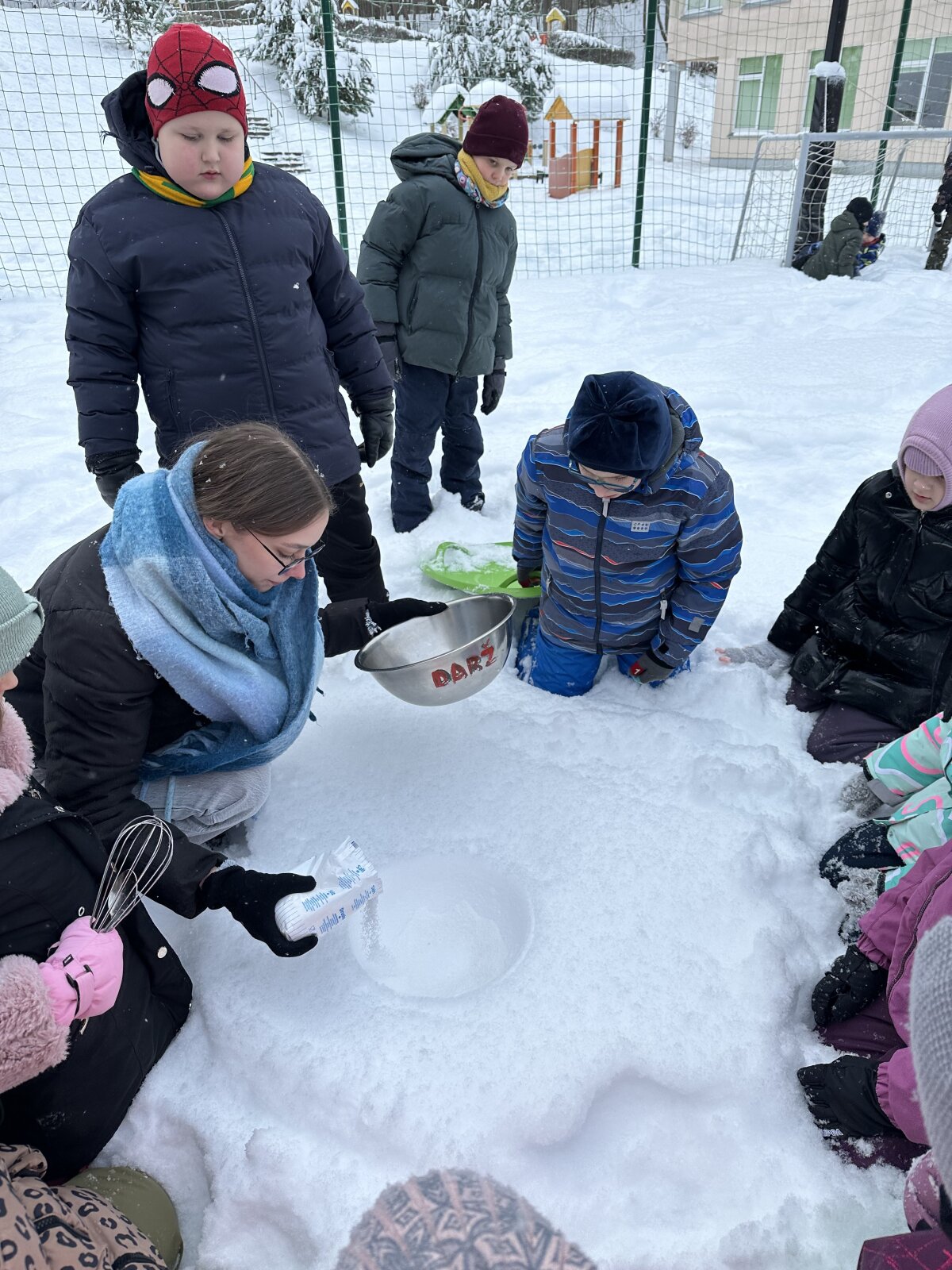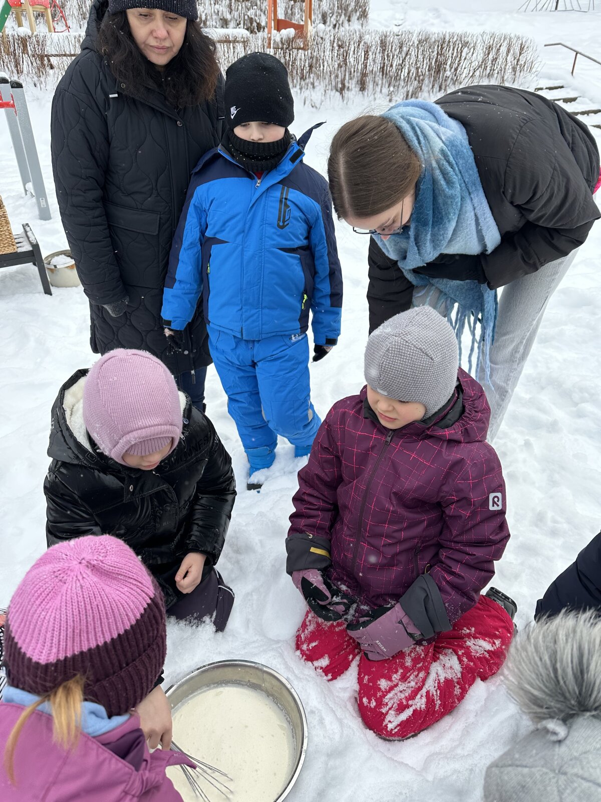 Sausio 23 dieną, net ir spaudžiant 10 laipsnių šaltukui, antrokams mokytis buvo labai smagu! Kartu su mokytojomis Asta ir Kotryna mokiniai išėjo į lauką ir ant sniego ėmėsi neįprastos, bet labai smagios veiklos – gamino ledus iš grietinėlės. Nors šaltukas kandžiojo nosis, entuziazmo netrūko. Grietinėlę plakėme visą pamoką, pasikeisdami, kantriai laukdami rezultato ir stebėdami, kaip žiema padeda kurti skanėstą